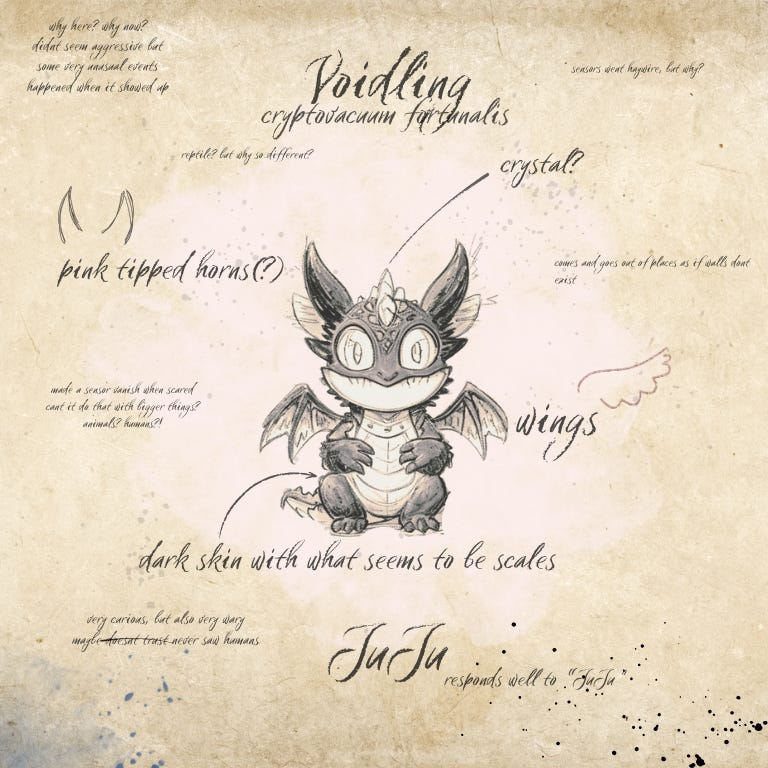 R: Shut up, I’m still thinking… [mumbles “Genus plus species”] Cryptozoology studies “mythic” creatures, which seems fitting… VOID is literally a vacuum… Luck would be… hmm…